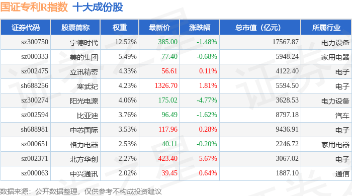 证券之星消息,11月18日,国证专利R(480070)指数报收于4468.1点,跌0.41%,成交1511.77亿元,换手率1.01%。当日该指数成份股中,上涨的有33家,晶晨股份以11.9%的涨幅领涨,下跌的有66家,阳光电源以4.77%的跌幅领跌。