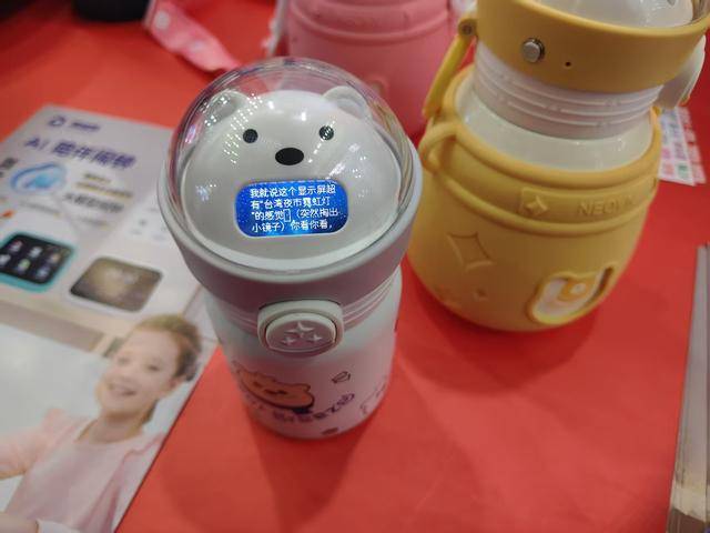 此外,记者还注意到适合职场打工人的“AI水杯”,水杯上会有一个小屏幕显示水温。水杯还有AI功能,可以与年轻人语言交流。当你熬夜加班时,水杯可能会提醒你:“主人,你已经连续工作10个小时,起来活动一下,喝点柠檬水,补充维生素C,缓解眼部疲劳吧!”