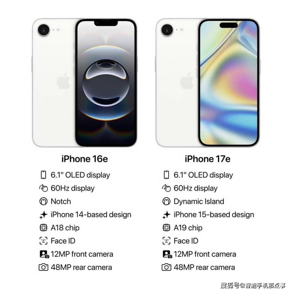 相同点在于,iPhone17e依旧保持60Hz屏幕刷新率、4800万像素后置单摄、以及类似的铝金属机身设计。