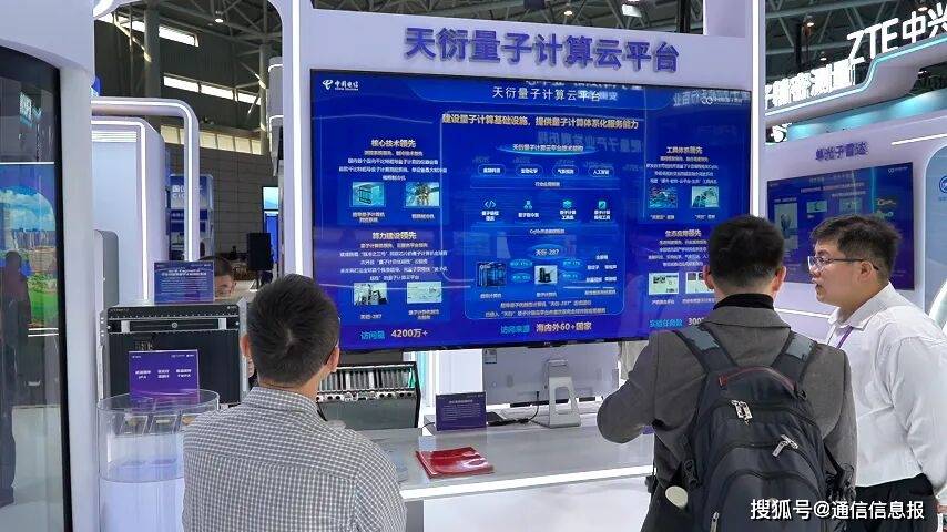 在中国电信量子计算展区,不仅展示了搭载“祖冲之三号”同款芯片的量子计算机核心器件,还展示了“天衍”量子计算教研平台、天衍教研一体机及天衍量算终端等系列产品,观众可亲身体验全球范围内首次开放的“量子优越性”云服务。
