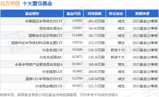 重仓北方华创的前十大公募基金请见下表: