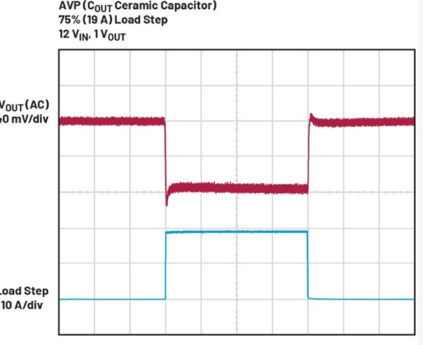 主动电压定位,也称为主动下垂技术,是一种能够根据负载状态动态调节电源输出的方法:在轻载时维持较高的输出电压,在重载时则将其调低。采用AVP技术的主要优势包括改善系统的负载瞬态响应以及降低对输出电容的要求,这是由于AVP为电源在应对负载突变时提供了更大的电压变化裕度。μModule稳压器作为一种完整、经过测试并符合标准的封装电源解决方案,因其具备快速负载瞬态响应能力、极小的电路板占用面积以及支持全陶瓷电容设计等特点,在电信与数据中心等领域广受青睐。然而,若仅采用传统非AVP控制技术,往往难以同时满足上述所有系统需求。