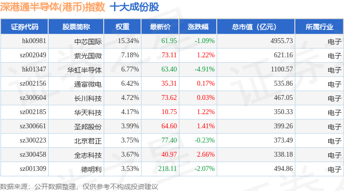 深港通半导体(港币)(983068)指数十大成份股详情如下: