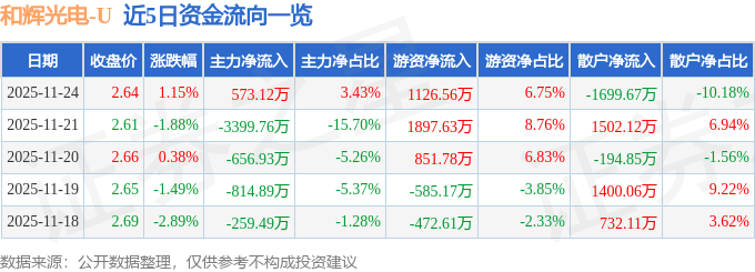 证券之星消息,截至2025年11月24日收盘,和辉光电(688538)报收于2.64元,上涨1.15%,换手率1.11%,成交量63.6万手,成交额1.67亿元。