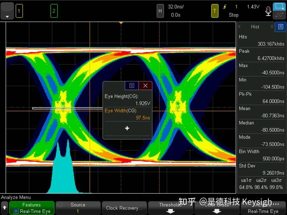 图中:眼图的眼高代表噪声;眼宽代表抖动。