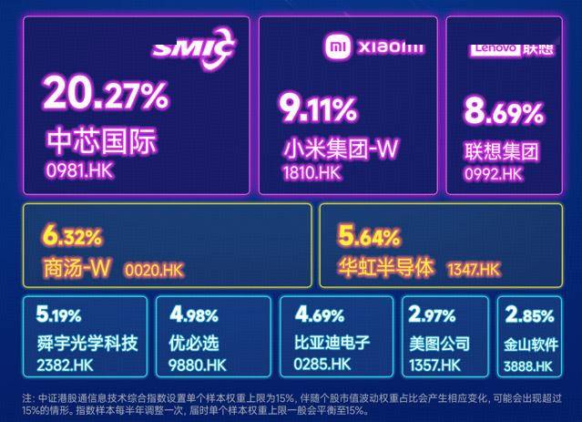 注:“全市场首只”是指首只跟踪中证港股通信息技术综合指数的ETF。中证港股通信息技术综合指数设置单个样本权重上限为15%,伴随个股市值波动权重占比会产生相应变化,可能会出现超过15%的情形。指数样本每半年调整一次,届时单个样本权重上限一般会平衡至15%。近期市场波动可能较大,短期涨跌幅不预示未来表现。请投资者务必根据自身的资金状况和风险承受能力理性投资,高度注意仓位和风险管理。