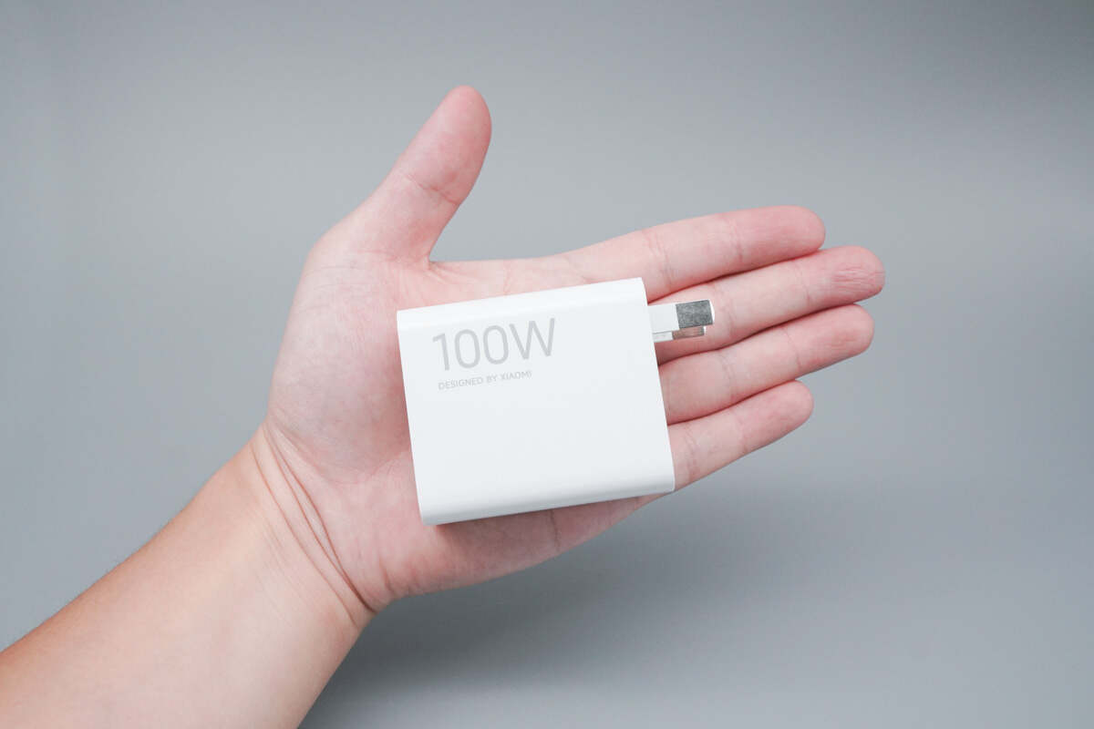 机身两侧均印有100W和DESIGNED BY XIAOMI字样。