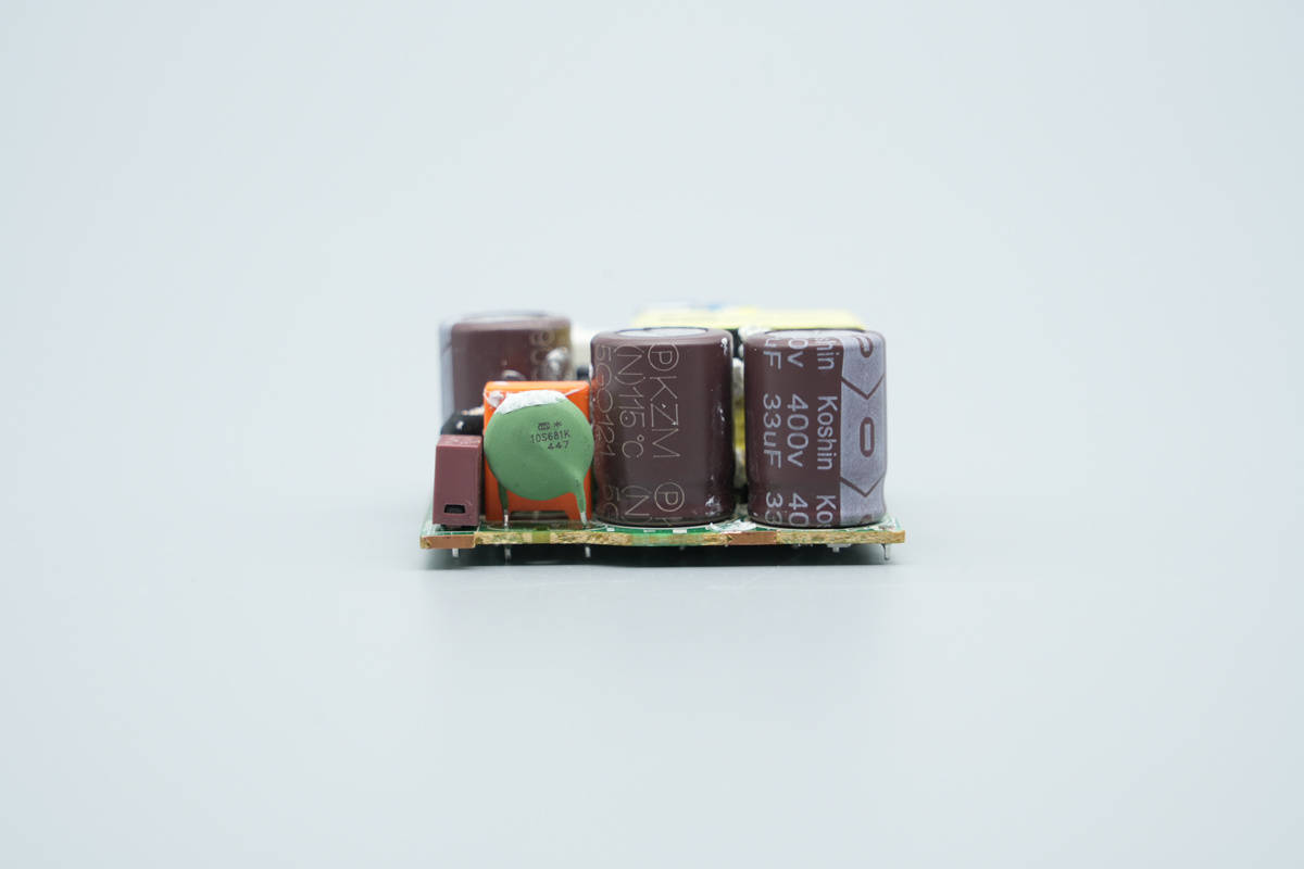PCBA模块侧面设有共模电感,高压滤波电容和蓝色Y电容。