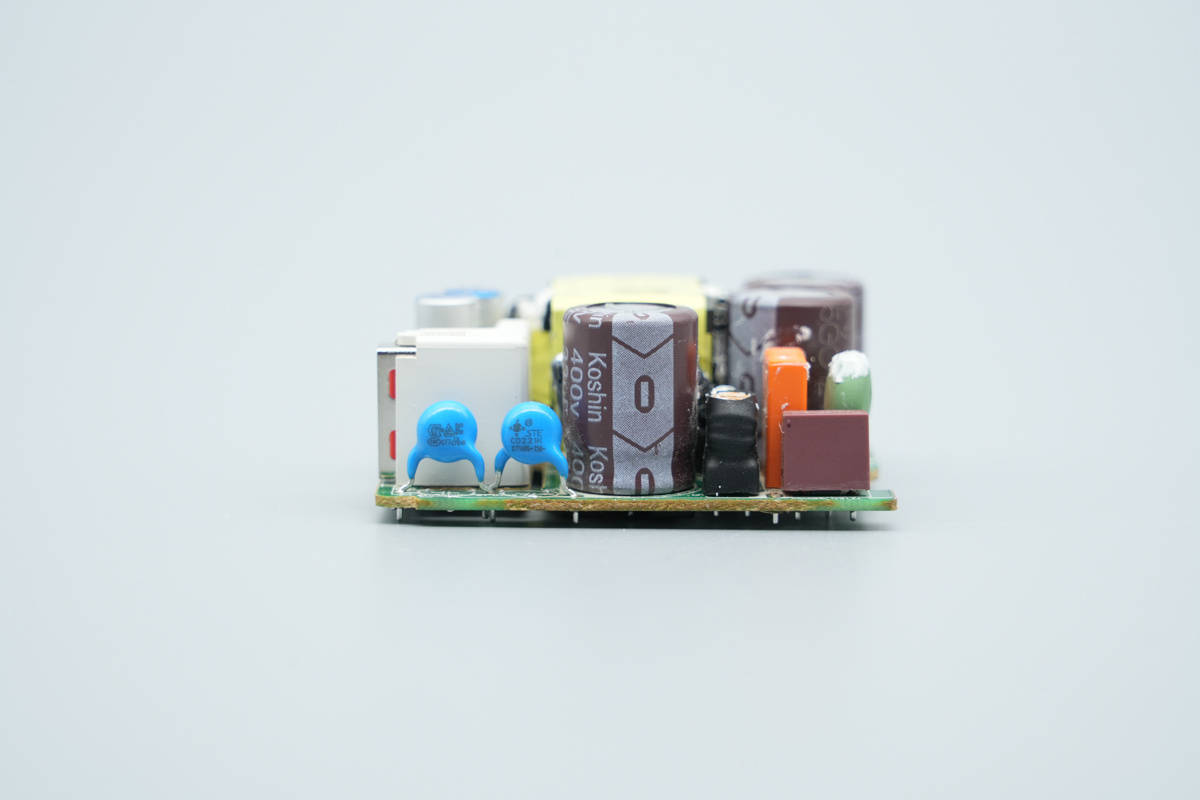 充电器内部高压滤波电容来自东佳,输出采用绿宝石固态电容滤波,内部做工用料扎实可靠。得益于南芯科技的全套快充芯片方案,充电器实现了初次级芯片的高效协同,使得该充电器在待机状态下达到极低的功耗,从而满足了对零待机功耗的设计需求。