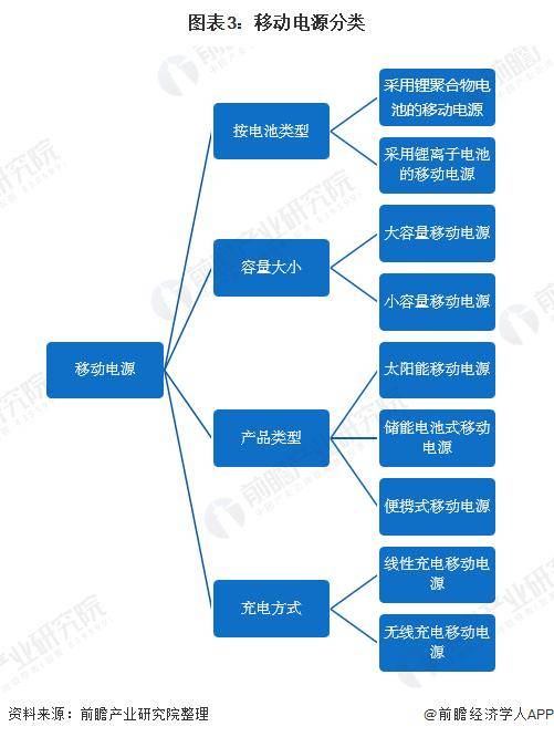 目前,市面上的移动电源类型繁多,主要品类均配置标准USB输出,能够满足手机、MP3/MP4、PDA、PSP、蓝牙耳机、数码相机等多种数码产品充电需求。按电池类型可分为普通锂离子电池和高级锂聚合物电池;按充电方式可分为线性充电和无线充电。
