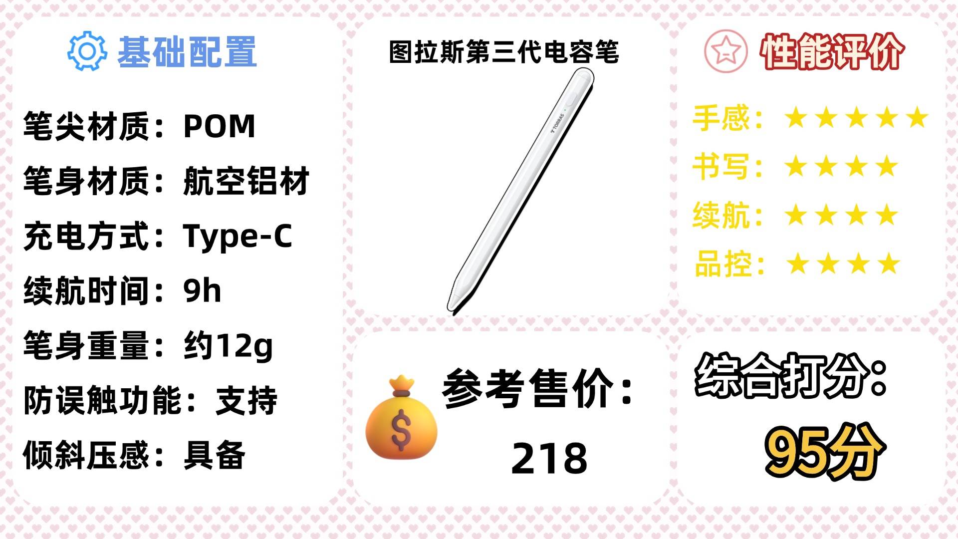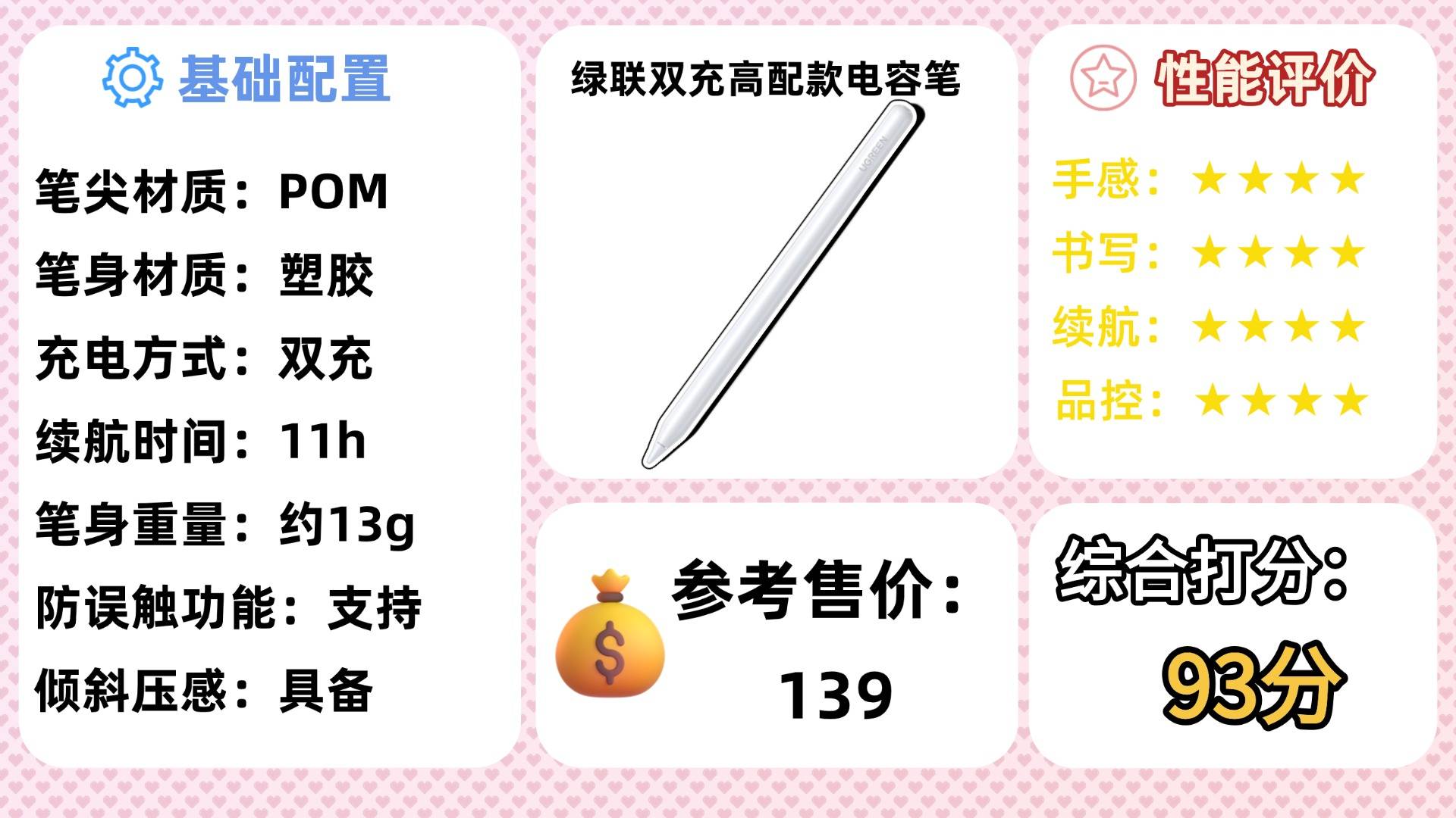 【解读】:对于追求书写流畅度的用户来说,选择一款高灵敏度的电容笔,特别是POM材质笔尖,能够大幅减少延迟,保证书写流畅。而对于精细绘图和手写需求的用户,支持高压感和精准响应的电容笔显然是更好的选择。