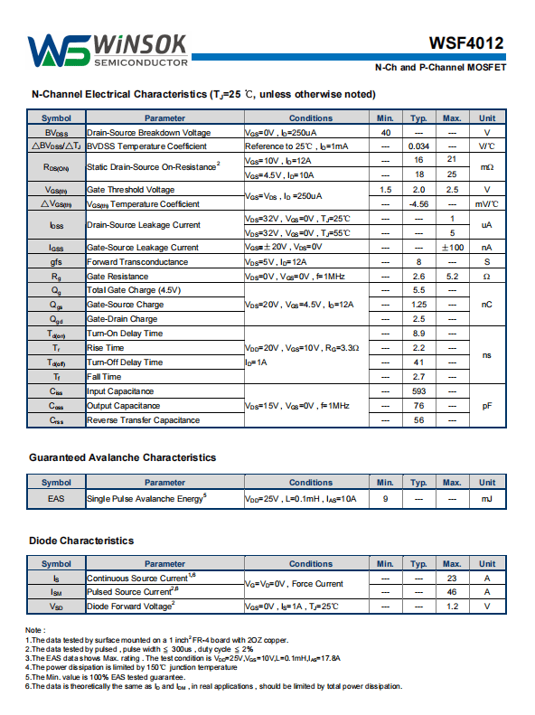 强固雪崩能力:N管单脉冲雪崩能量28mJ,P管66mJ,可在电机堵转或急停时吸收反激能量,无需外置续流二极管,简化电路设计。