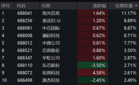 【科创芯片50ETF(588750)标的指数前十大成分股】