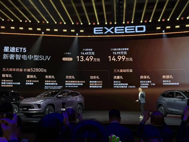 11月28日,星途汽车旗下全新中型增程SUV——星途ET5正式上市,共推出2款车型,售价区间14.49-15.99万元,超级置换价13.49-14.99万元。新车首搭地平线HSD与征程6P芯片,并提供1.5T增程动力系统,纯电续航210km,综合续航1310km。