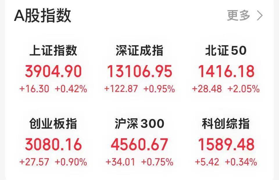 今日早盘,A股市场震荡走强,有色金属板块大幅领涨,消费电子板块表现活跃,中兴通讯涨停。截至午间休市,上证指数站上3900点关口,报3904.90点,涨0.42%;深证成指、创业板指分别上涨0.95%和0.90%。