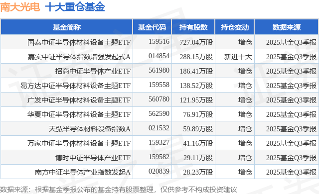 重仓南大光电的前十大公募基金请见下表: