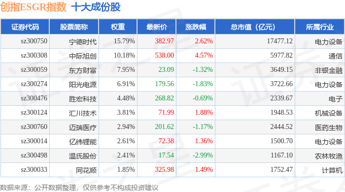 资金流向方面,创指ESGR(470028)指数成份股当日主力资金净流出合计25.37亿元,游资资金净流入合计6.44亿元,散户资金净流入合计18.94亿元。成份股资金流向详情见下表: