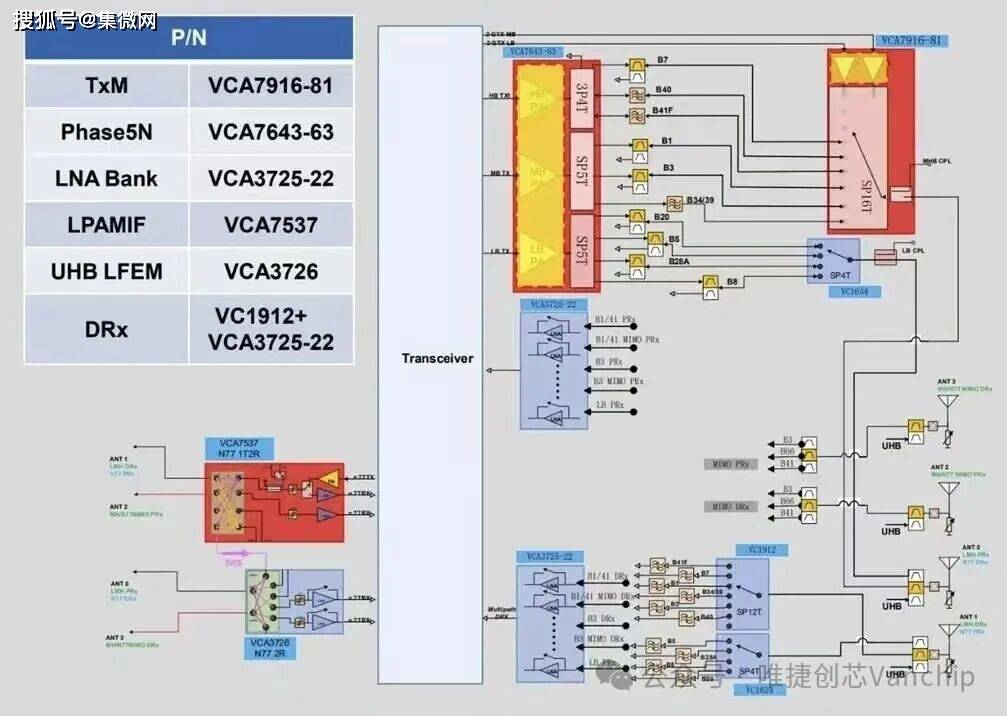 作为深耕射频前端领域的核心产品,唯捷创芯VCA系列基于Phase 5N架构打造,覆盖Sub-3G至Sub-6G全频段,可灵活适配中高端车型的多元通信需求;其集成的Tx Module、LNA Bank等核心器件,在保障通信性能稳定性的同时,实现了方案成本的优化平衡。目前该系列已具备稳定的批量交付能力,随着AN762S模组进入量产周期,VCA系列也将同步渗透至更多主流车型的前装供应链。