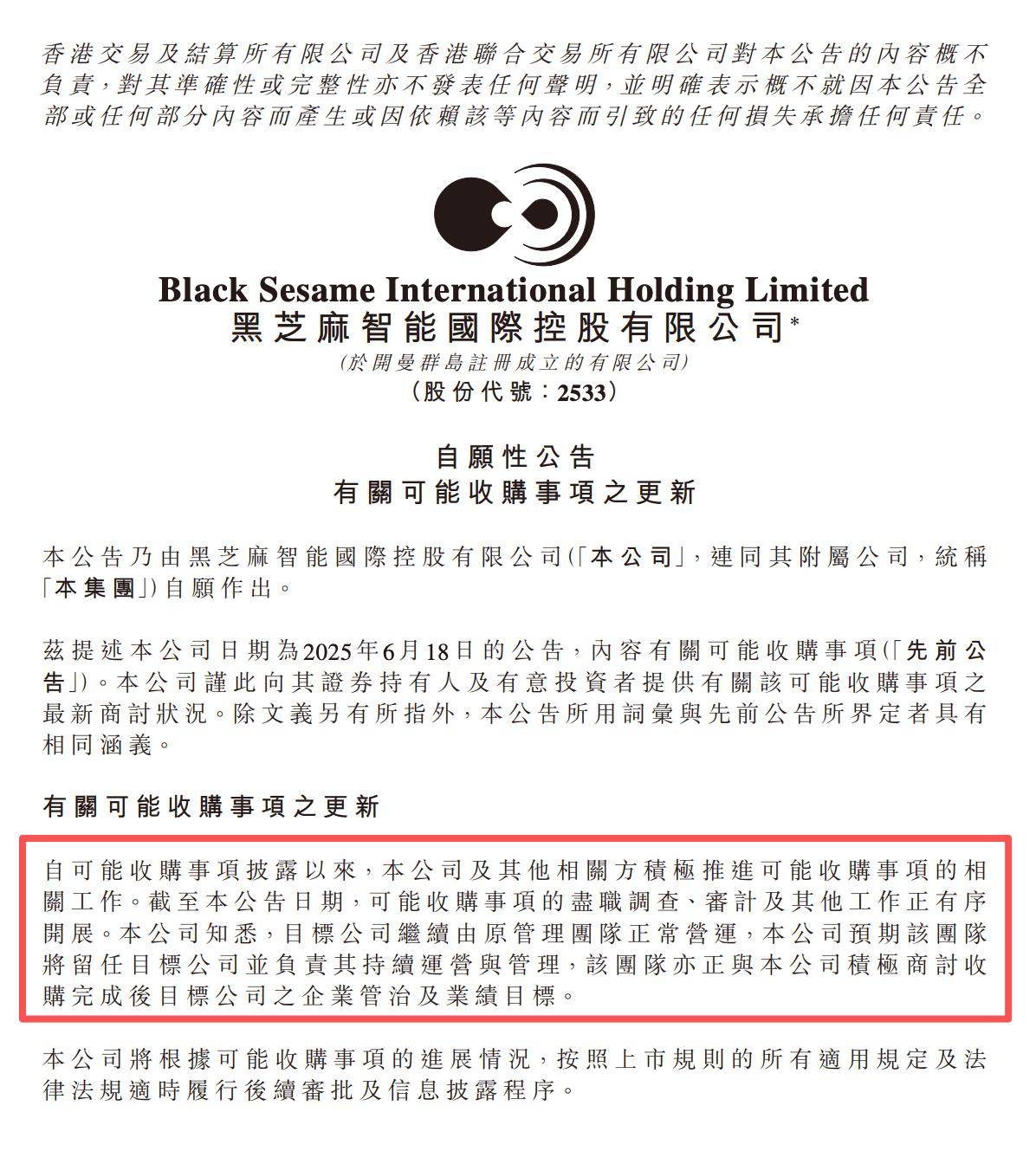 今年6月18日和8月22日,黑芝麻智能曾发布“可能收购事项”公告。