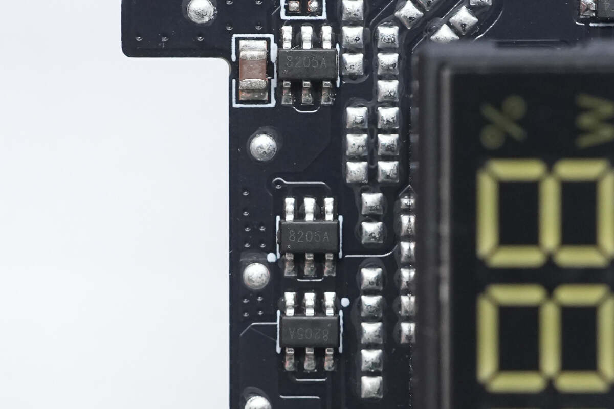 背面用于USB-C接口的两颗VBUS开关管特写,同样为8205A。