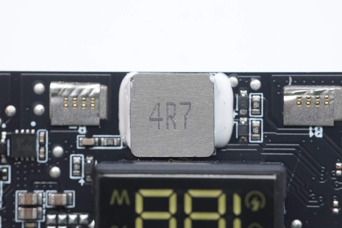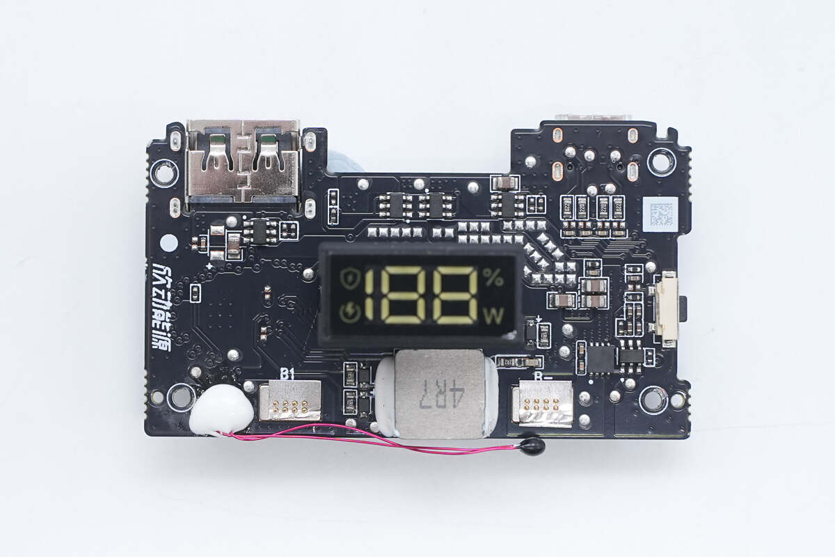 PCB板正面设有一体式数码管显示模组、电感、电池保护芯片、电池保护管以及VBUS开关管。