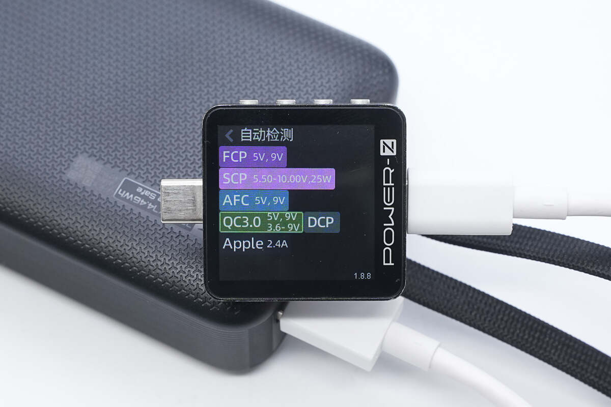 另外测得USB-A口支持FCP、SCP、AFC、QC3.0、DCP、Apple 2.4A充电协议。