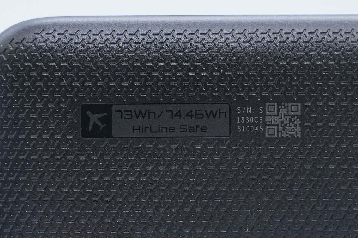 背面一角还有73Wh/74.46Wh电池能量参数以及可上飞机标识设计。