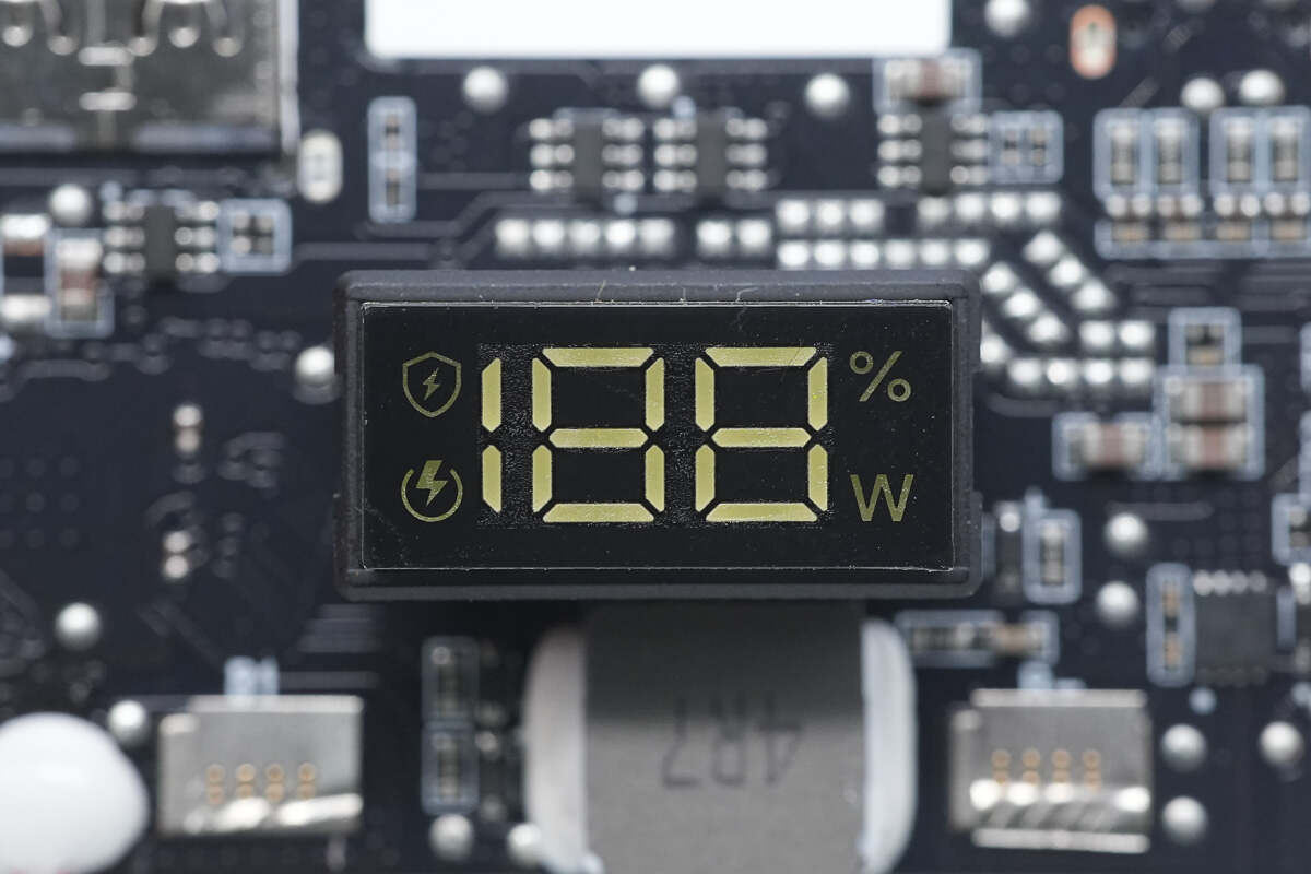 一体式数码管显示模组特写,用于实时显示电量与输出功率。