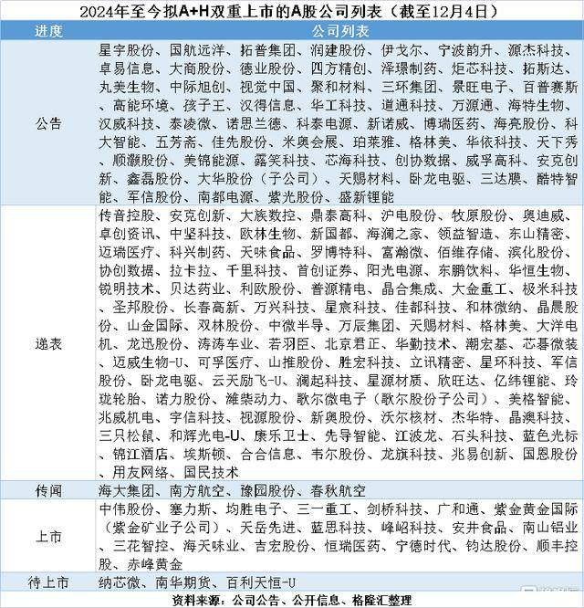 近期,又有多家A股公司迎来A+H双重上市的进展,相关表格见文末。