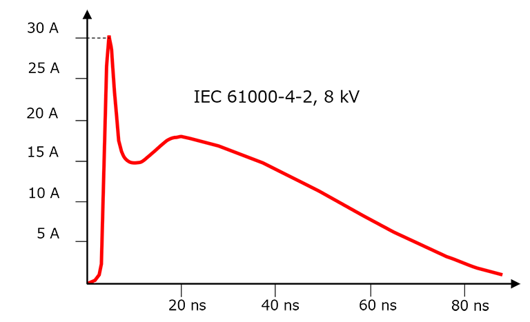 图7:ESD测试波形示例(IEC 61000-4-2)