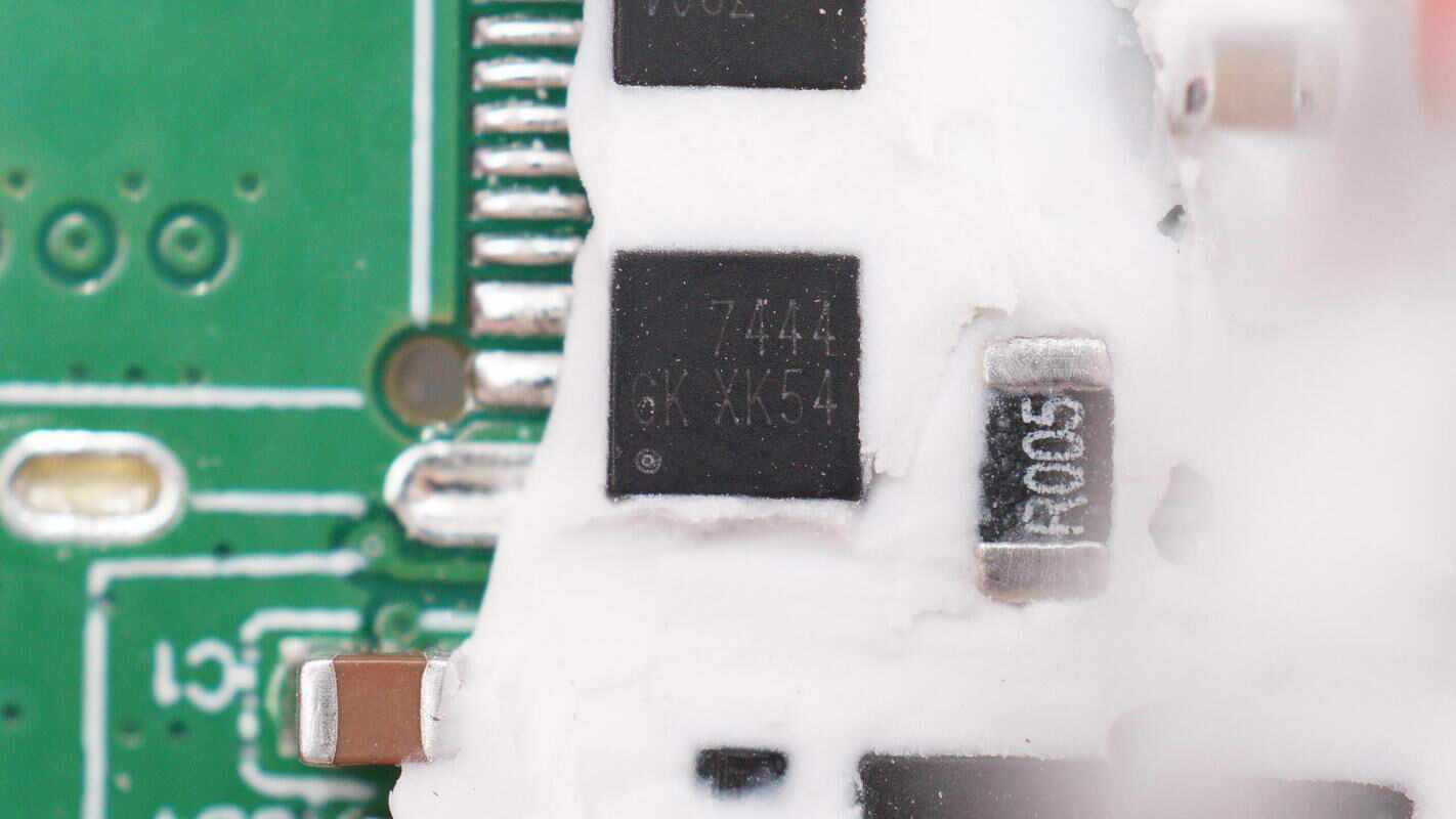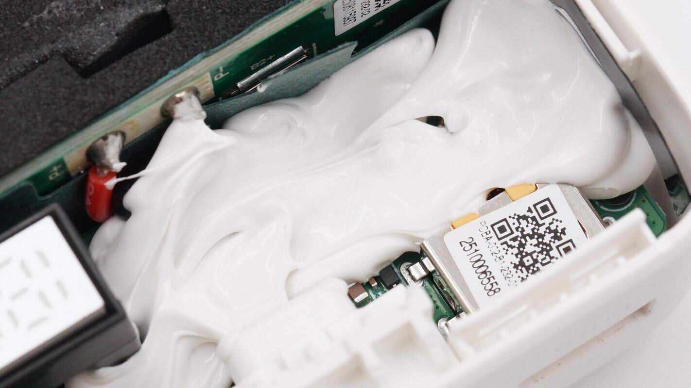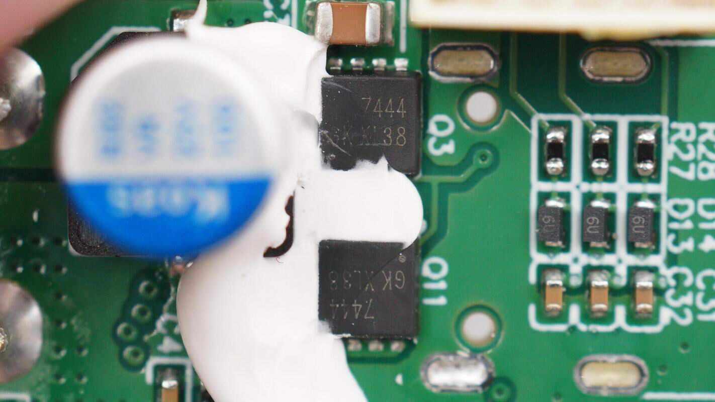 接下来看产品PCBA模块区域,先将白色导热胶去除掉,可以看到内部的电路结构。