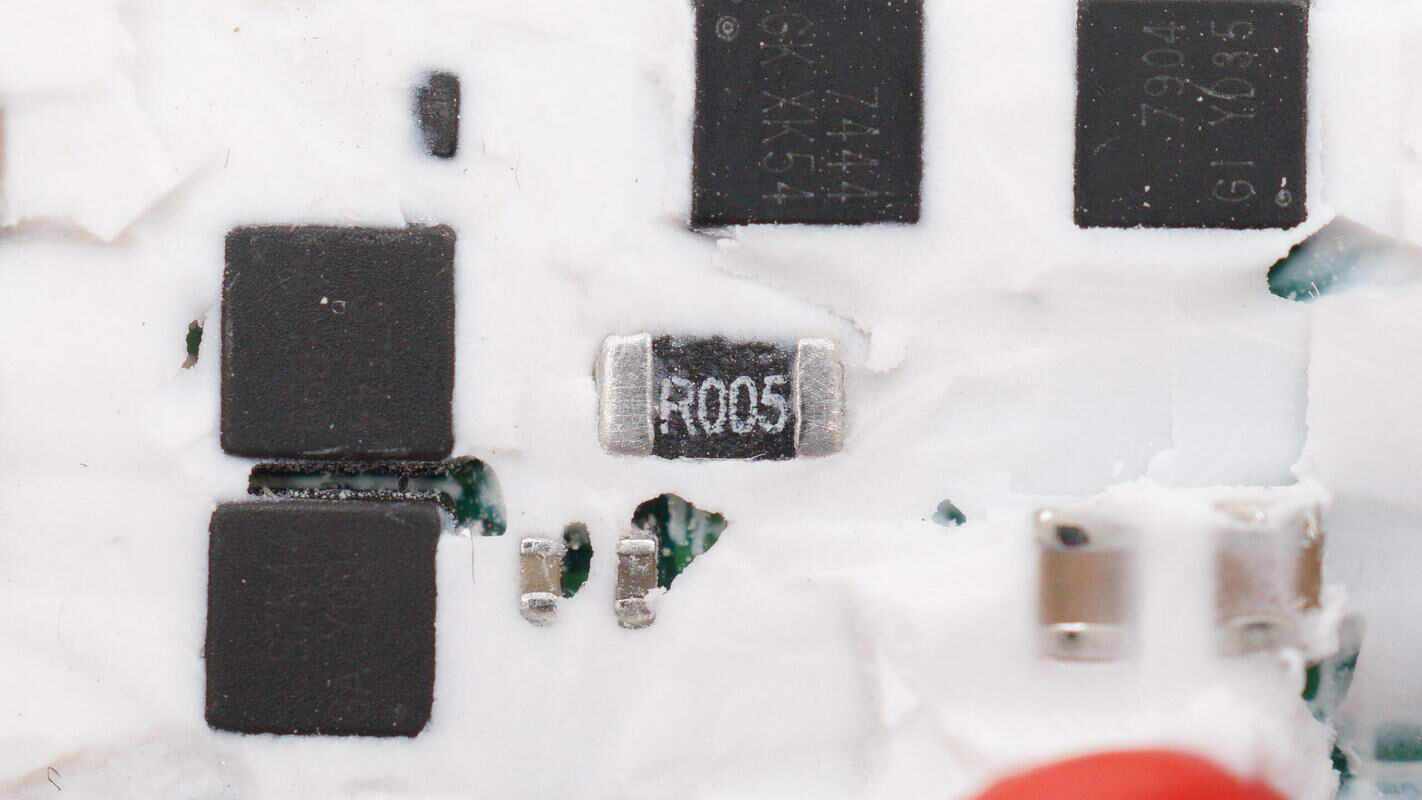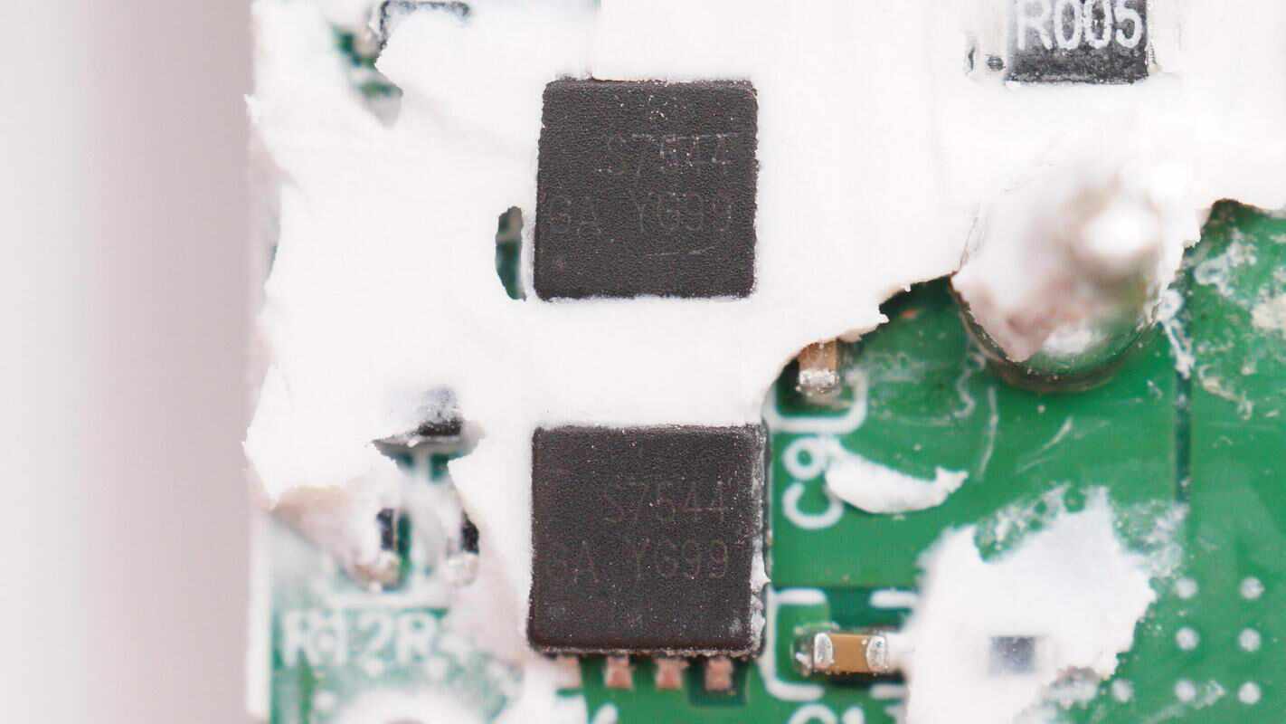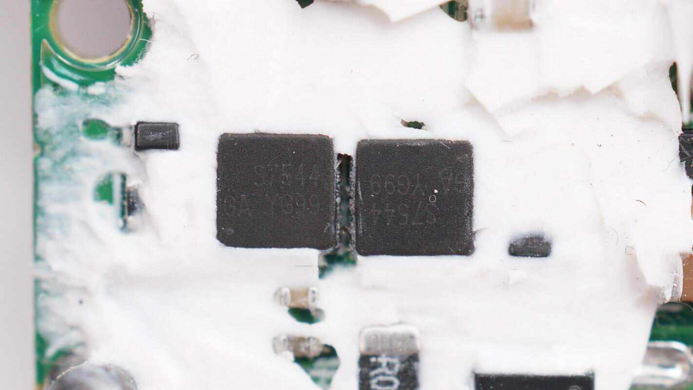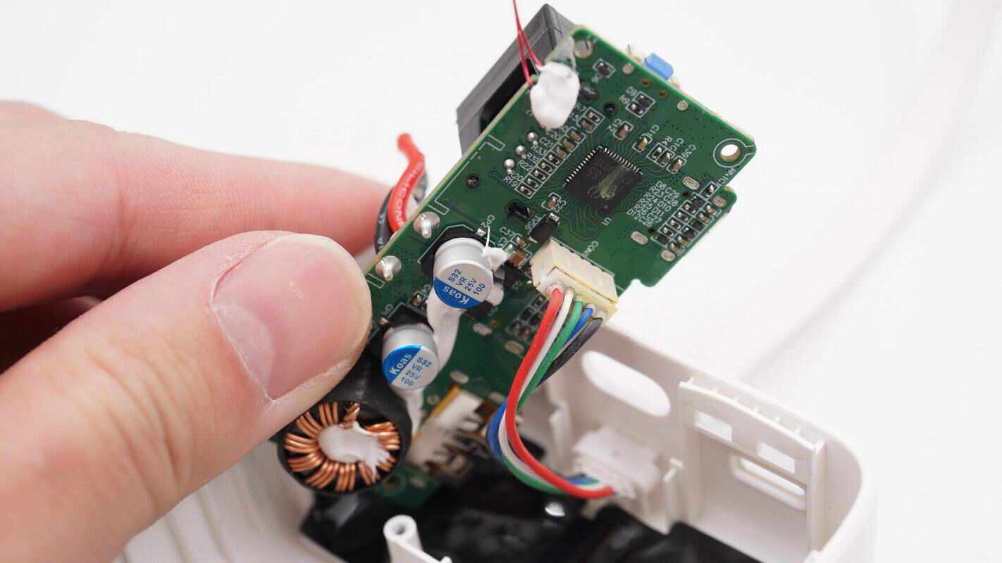 接下来看产品PCBA模块区域,先将白色导热胶去除掉,可以看到内部的电路结构。