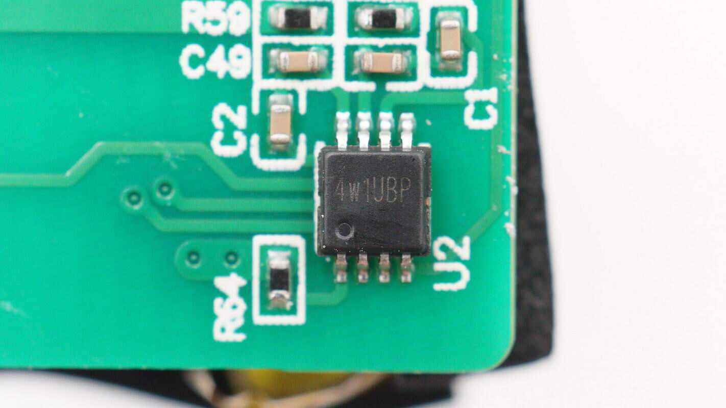 将青稞绝缘纸撕下后,可以看到整块电池保护板,上面焊接有锂电保护芯片与锂电保护管以及均衡电路。电芯与保护板之间通过镍片点焊连接,而电池保护板跟PCBA模块之间通过顶部大面积焊盘焊接。