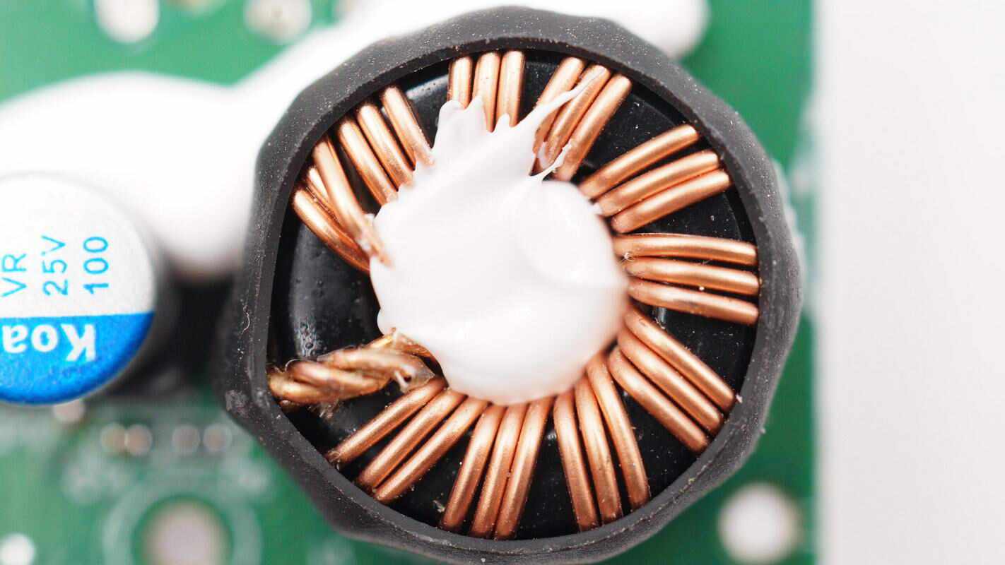 在PCBA模块的功率变换区域打了大面积白色导热胶,用于将升降压开关管和 VBUS 开关管等功率器件散发出的热量导出到正面板外壳上。