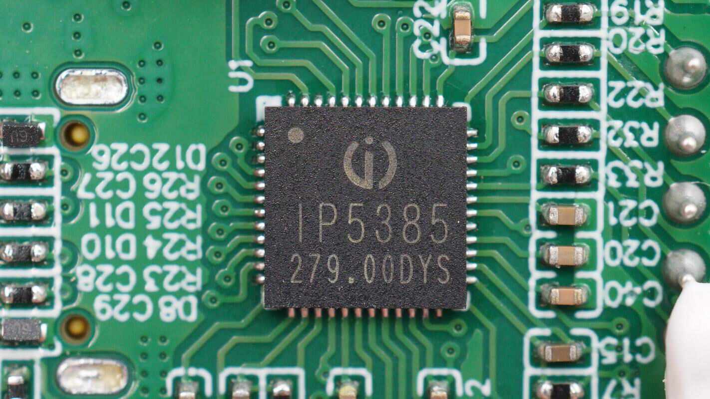 充电宝主控芯片来自英集芯,型号IP5385,这是一款超高集成度的快充移动电源SOC芯片,支持PD3.0、PPS、AFC、FCP等主流快充协议,并集成同步双向升降压驱动、锂电池充电管理、电池电量指示等多功能,可为快充移动电源提供完整的电源解决方案。