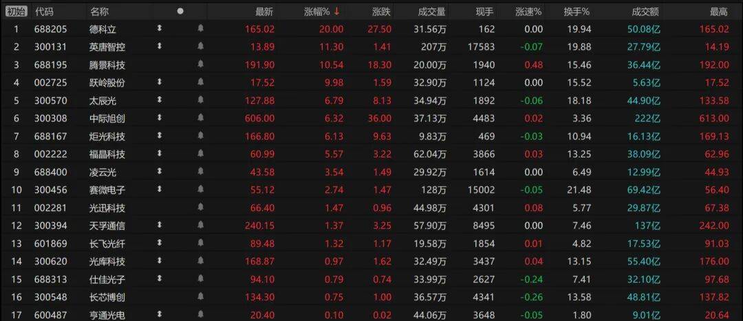 12月9日,OCS交换机(光电路交换机)产业链概念股集体走强。截至收盘,德科立涨停,英唐智控、腾景科技涨幅超10%。