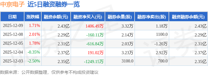 中京电子融资融券信息显示,融资方面,当日融资买入4137.96万元,融资偿还2731.47万元,融资净买入1406.49万元。融券方面,融券卖出1.18万股,融券偿还0.0股,融券余量3.32万股,融券余额39.44万元。融资融券余额2.43亿元。
