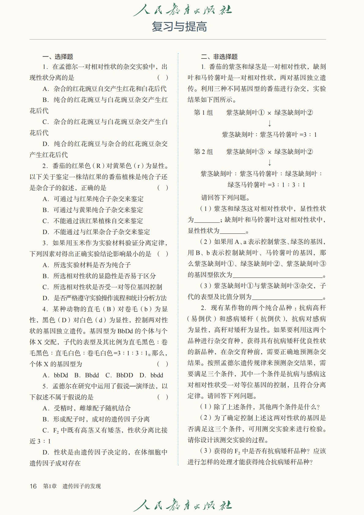 为了帮助高中生自主预习与有效复习,我们整理了2026新教材人教版高中生物必修二电子课本,教材突出跨学科思维与实际应用能力的培养,下面以图片的形式呈现给大家,希望可以帮助到大家。