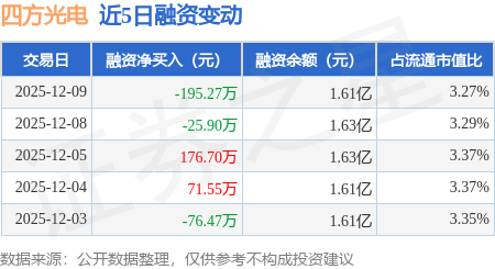 证券之星消息,12月9日,四方光电(688665)融资买入212.65万元,融资偿还407.92万元,融资净卖出195.27万元,融资余额1.61亿元。