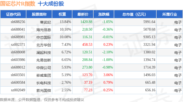国证芯片R(480017)指数十大成份股详情如下: