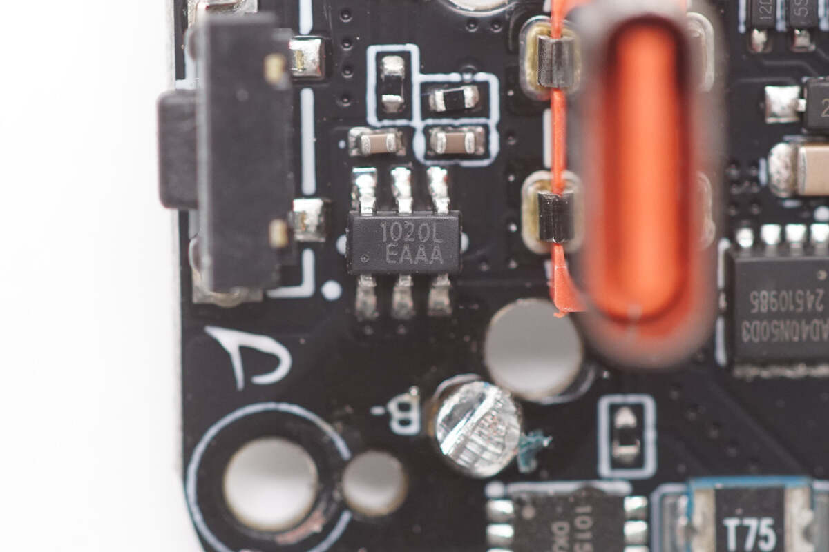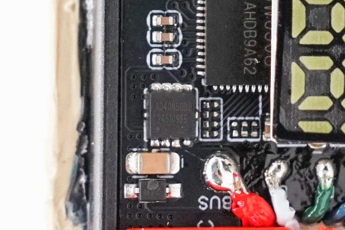 用于USB-C自带线的VBUS开关管特写,同样来自Adamant砹德曼,型号AD40N50D3,NMOS管,耐压40V,采用PDFN3333封装。