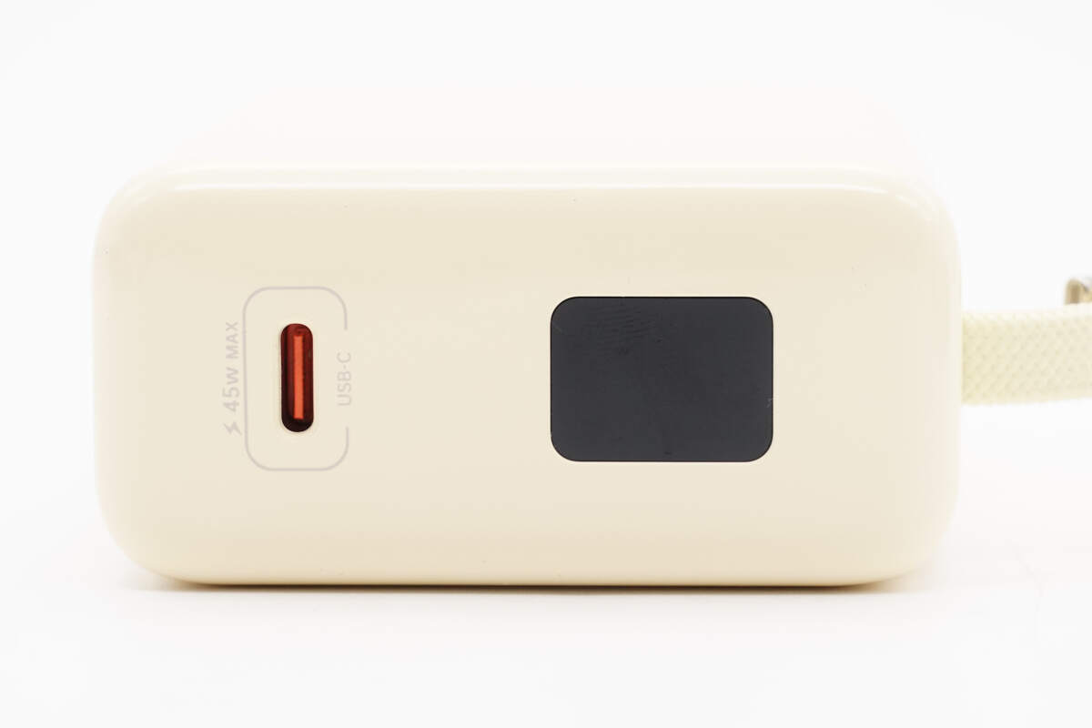 机身顶部USB-C接口以及数显屏,数显屏可显示当前剩余电量。
