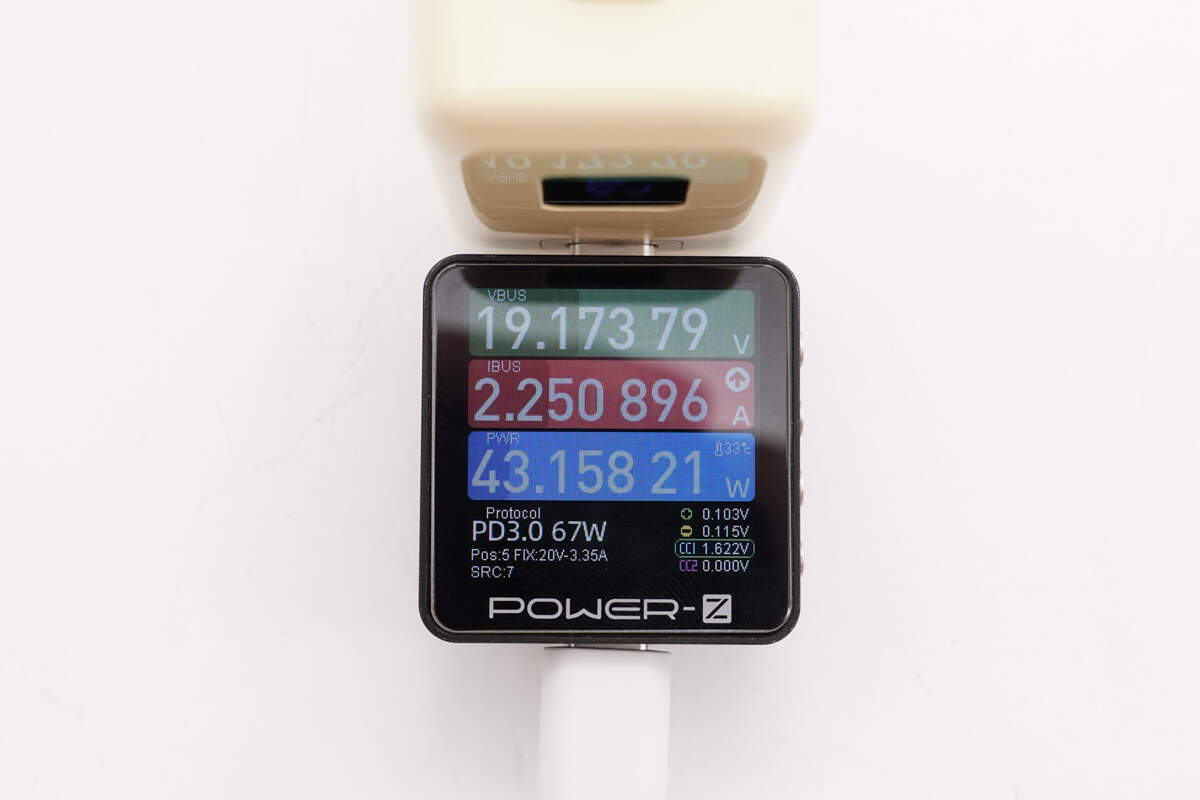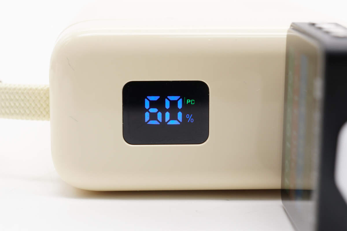 在配置方面,这款移动电源配备 1 个 USB-C 接口 + 1 路自带 USB-C 线,两路均支持最高 45W 双向快充,可满足手机、平板、小型笔电等多类终端的快充需求。协议上,实测兼容 UFCS 融合快充以及 PD3.0、PPS等市面主流快充协议,对安卓阵营与多品牌生态十分友好;并具备机身数显屏可实时显示电量与充电状态,并指示是否处于 PD 快充,对于用户判断充电状态更加直观。