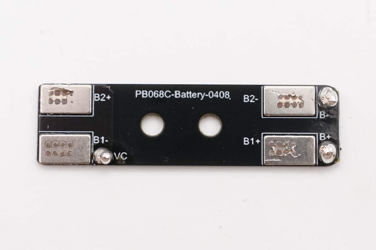 电池保护板预留了四个大面积的镍片连接焊盘,对应两节电芯的串联连接。