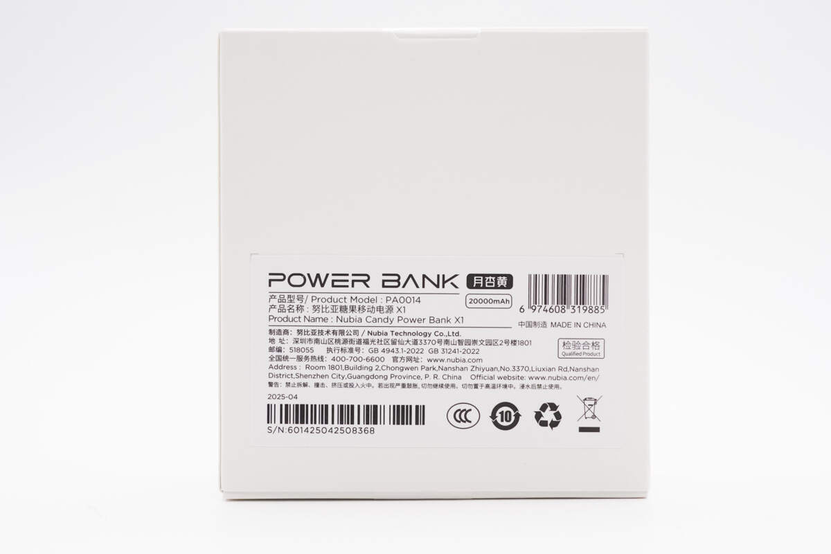 产品名称:努比亚糖果移动电源X1;产品型号:PA0014;
