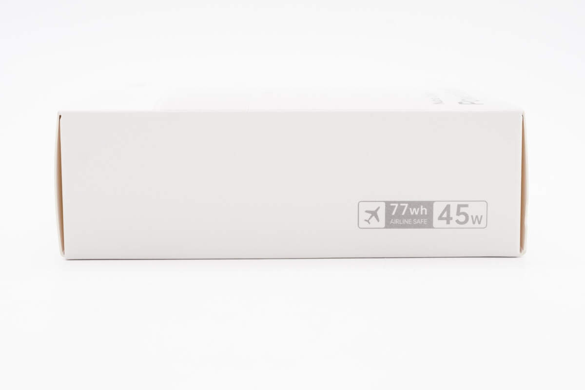侧面拥有77Wh容量、45W充电功率、可上飞机标识。