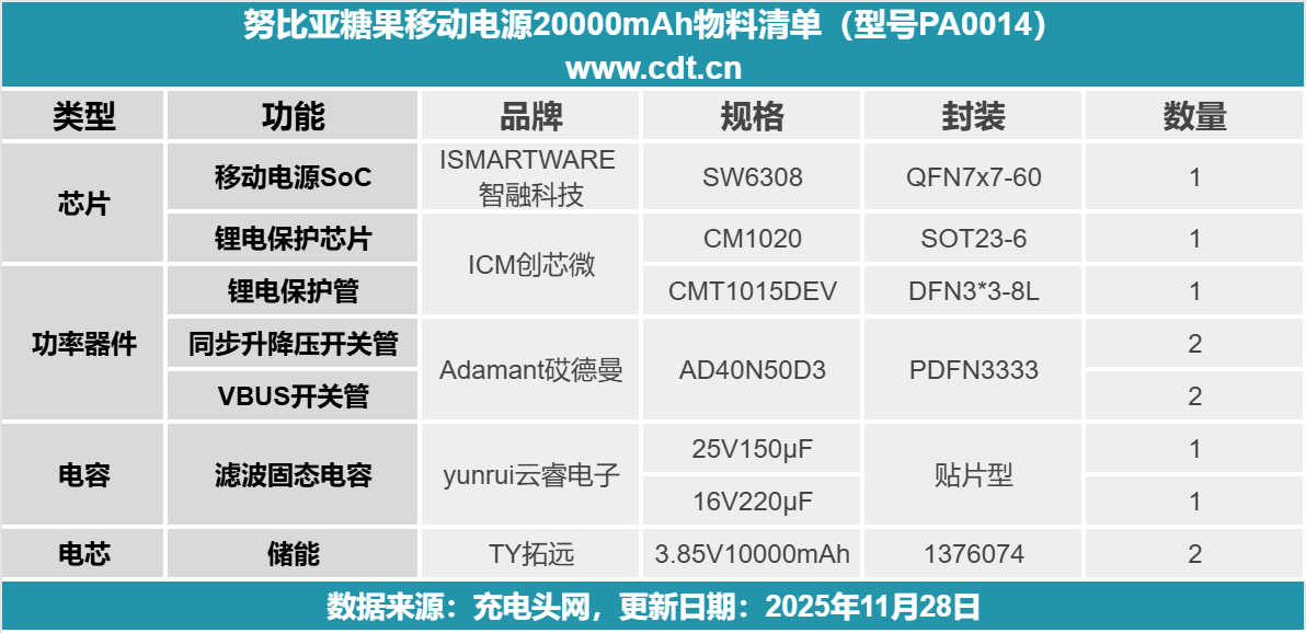 最后附上努比亚糖果移动电源20000mAh的核心器件物料清单,方便大家查阅。
