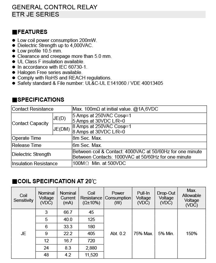 在工业控制、智能家居、家电设备等领域,继电器作为电路 “开关枢纽”,其性能、安全性和适配性直接决定了整机的稳定运行。今天就给大家推荐一款兼具低功耗、小体积与高安全认证的优质产品 ——ETR-JE-112DM 通用控制继电器,堪称多场景电路控制的 “黄金搭档”