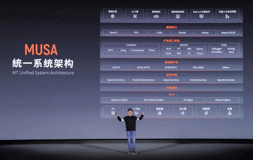 从这个角度来看,Jim Keller的观点确实是有道理的,不过关键点就在于其他厂商是否愿意继续跟随英伟达,打造一个适用于CUDA Tile的移植工具。其实国内也有厂商在全盘复刻CUDA生态,比如刚刚上市的摩尔线程,他们的MUSA生态的目标就是在国产GPU上打造一个类似于CUDA的平台,让同一套软件能在图形、计算、多媒体和AI等多个产品线上复用。