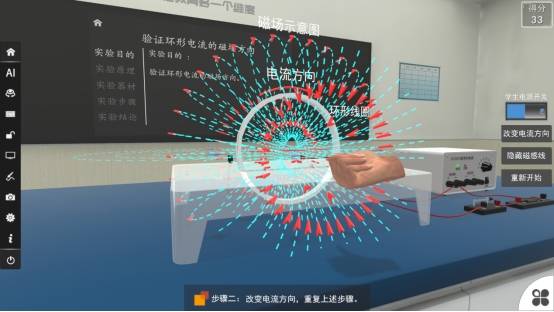 在电与磁的世界里,概念尤为抽象。矩道物理虚拟实验室的“电学探究模块”能够实时、动态地显示电流的流动路径和大小,将无形的电流化为可视的动画。同样,三维立体的电场线与磁感线分布模型,可以让学生从任意角度观察其疏密与走向,深刻理解场强的概念。这些功能让库仑力、洛伦兹力等不再只是书本上的公式,VR课堂上成为可视化的动态图景。
